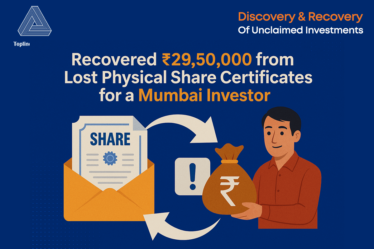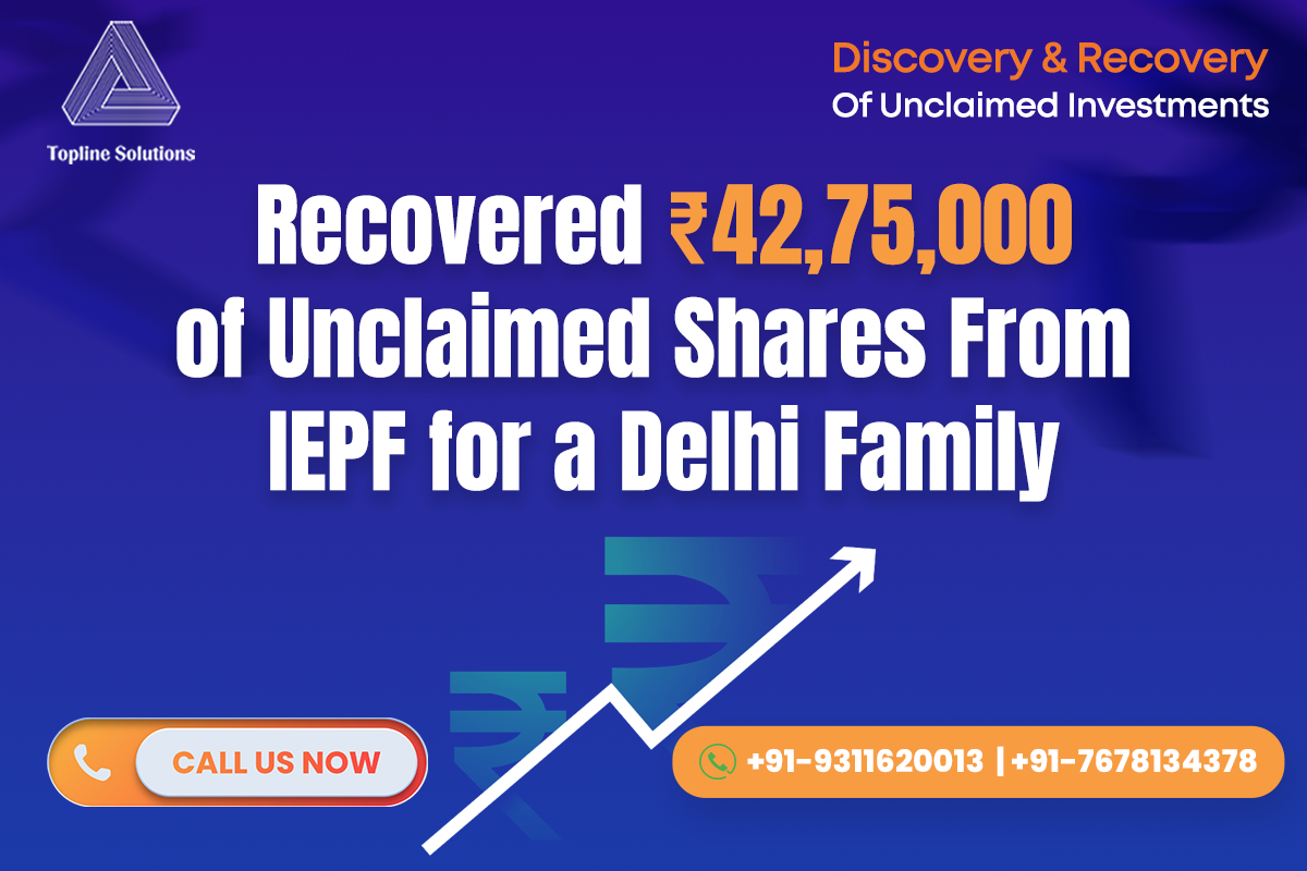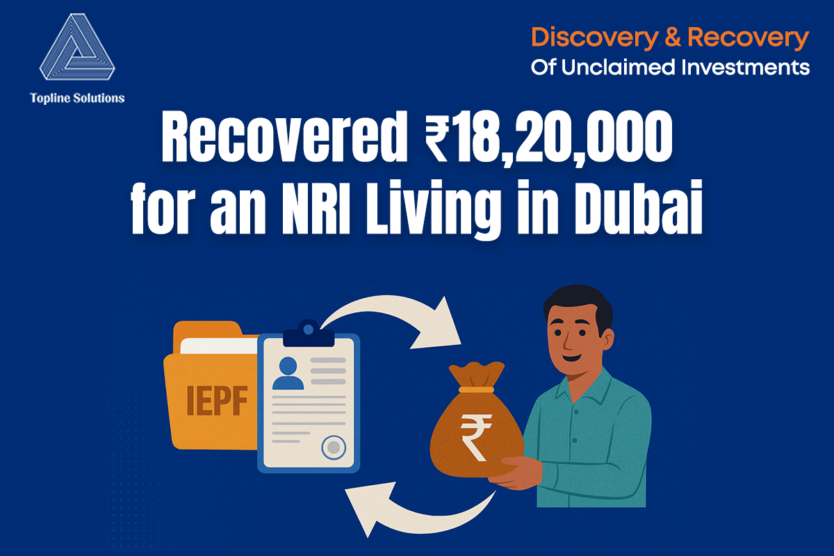 “I was struggling to recover long-lost investments transferred to IEPF. Topline Solutions handled all the complex legal and financial paperwork, and got my funds back — with zero upfront fee.”